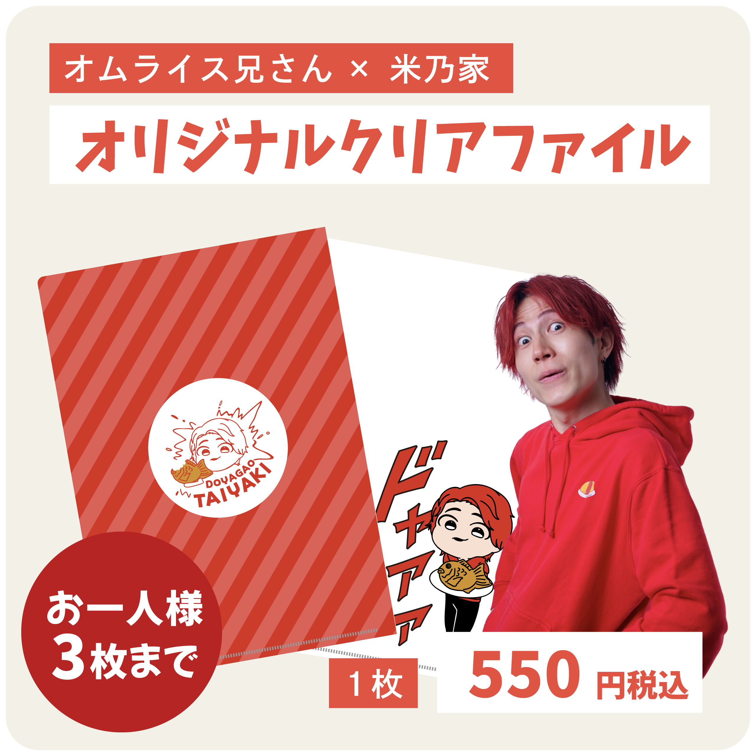 人気キャラクター・オムライス兄さんのオリジナルクリアファイルです。