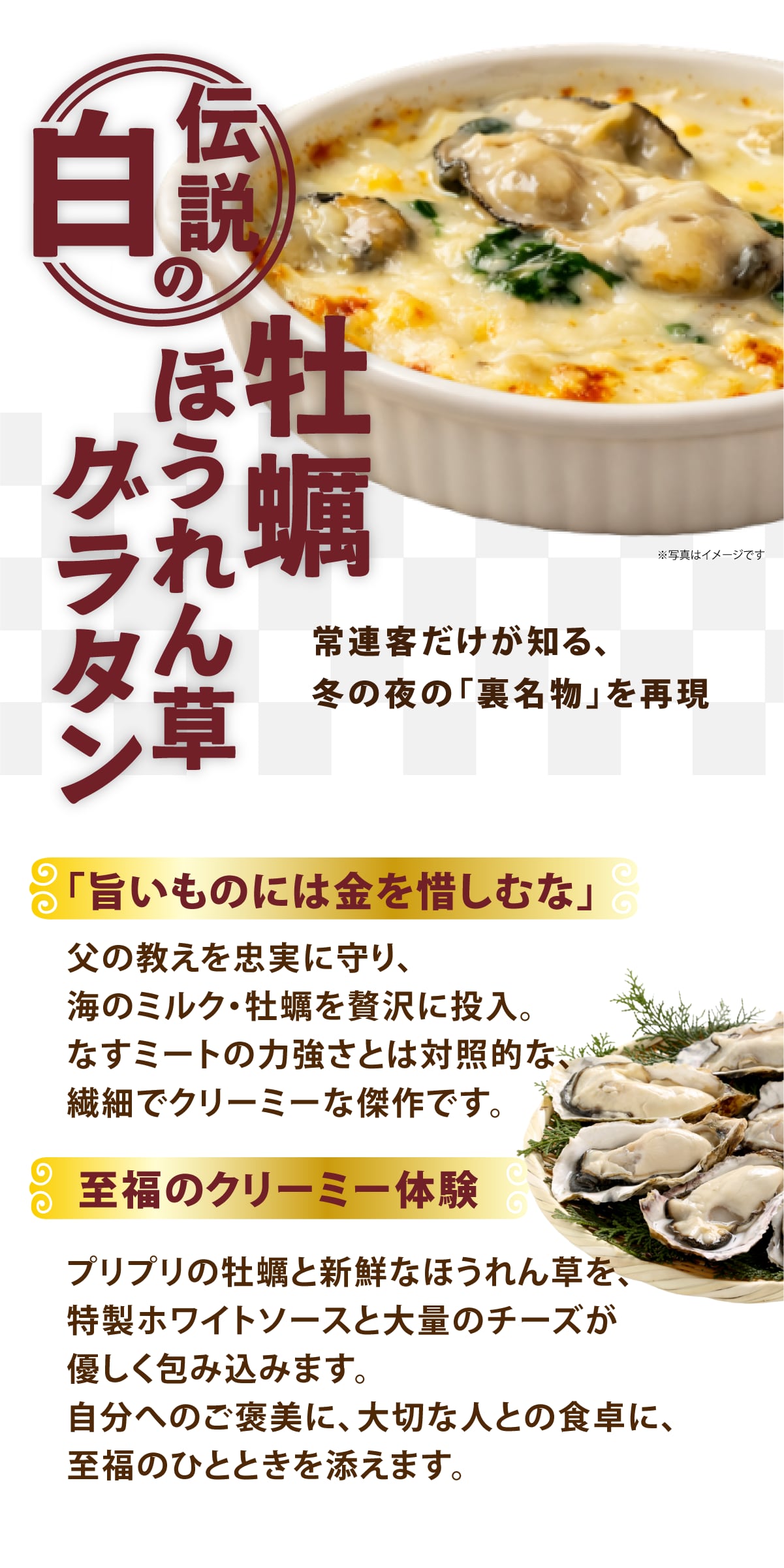 オーブンで温めるだけで、熱々のグラタンをお楽しみいただけます。